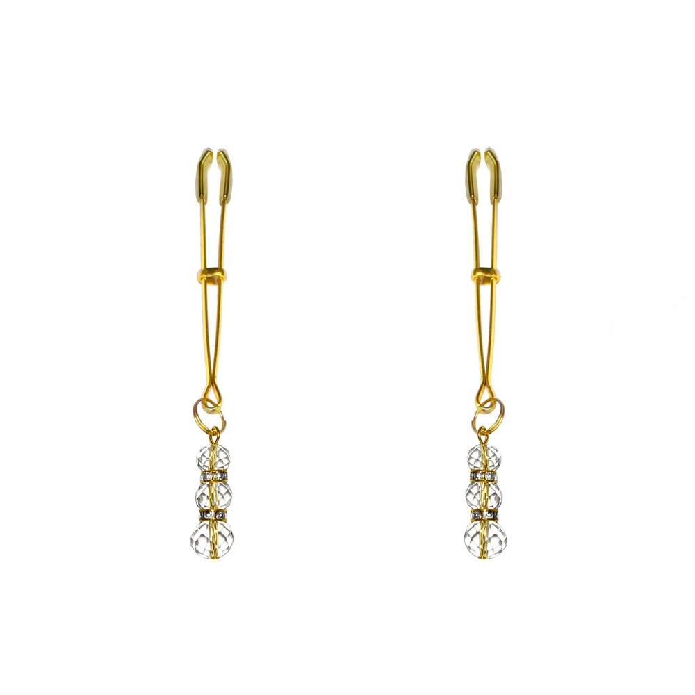 Тонкі затискачі для сосків з підвіскою Feral Feelings - Thin nipple clamps, золото/прозорий