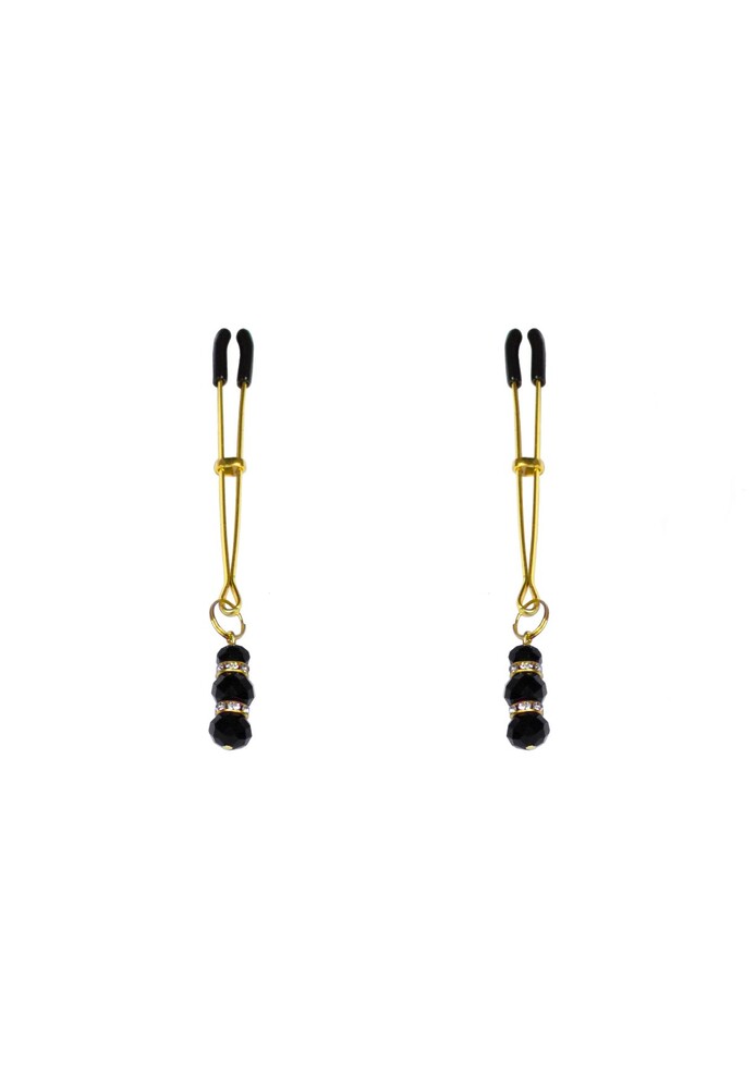 Тонкі затискачі для сосків з підвіскою Feral Feelings - Thin nipple clamps, золото/чорний