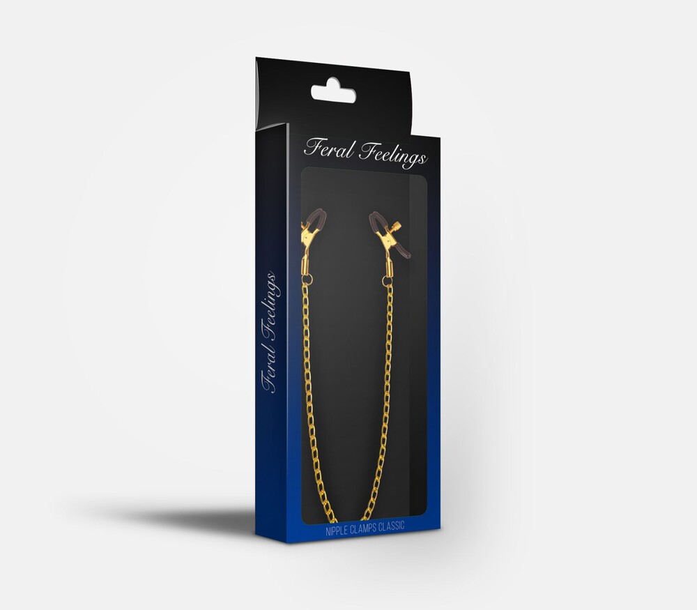 Затискачі для сосків з ланцюжком Feral Feelings - Nipple clamps Classic, золото/чорний